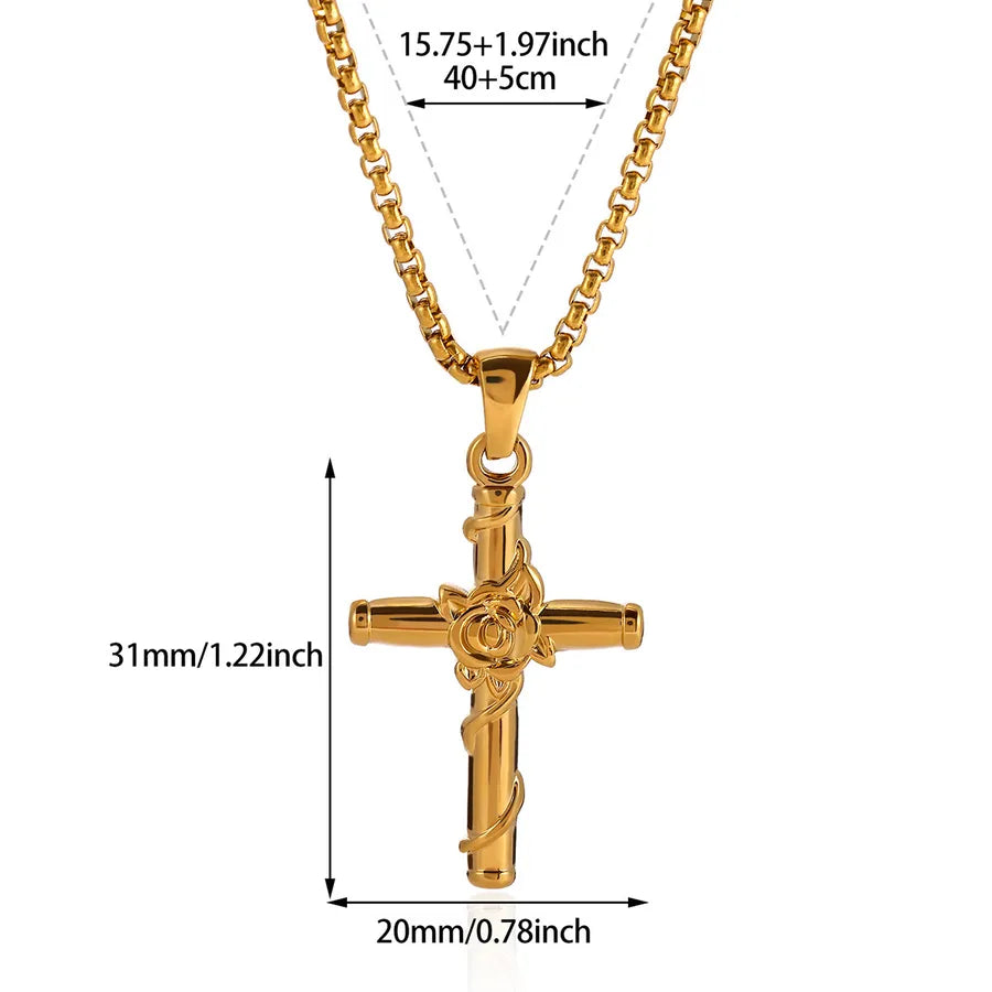 Pattern: Cross,Rose Gold Plating Thickness: 0.03µm Color: Steel Color Material: 304 Stainless Steel Classification: Necklace Gender: Unisex Weight: 10g Read more